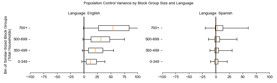 It is also important to point out that variance is greater for English speakers given the absolute scale of the number of English speakers in the United States compared to Spanish speakers.