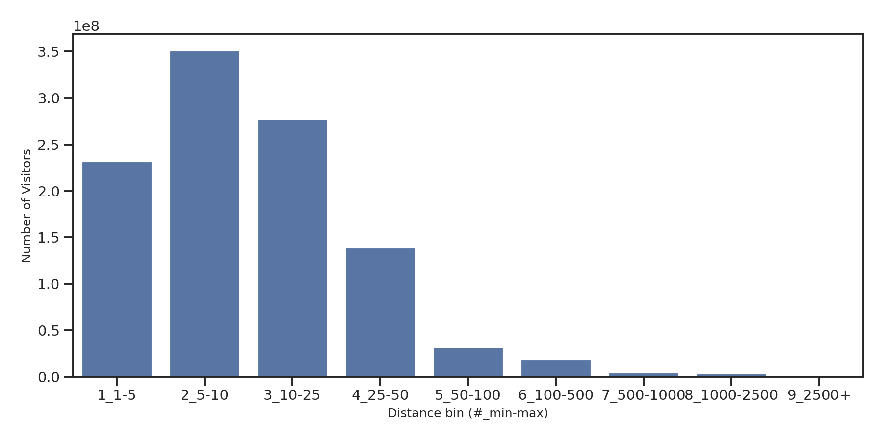 Motionworks segments trade areas by 1) local, 2) hyper local, 3) non-local. Local is defined as the home to place distance is < 50 miles, Hyper local is defined as the home and place have the same Census block group, and Non-local is defined as the home to place distance is > 50 miles. The figure below illustrates the distribution of visits by trade area segment.